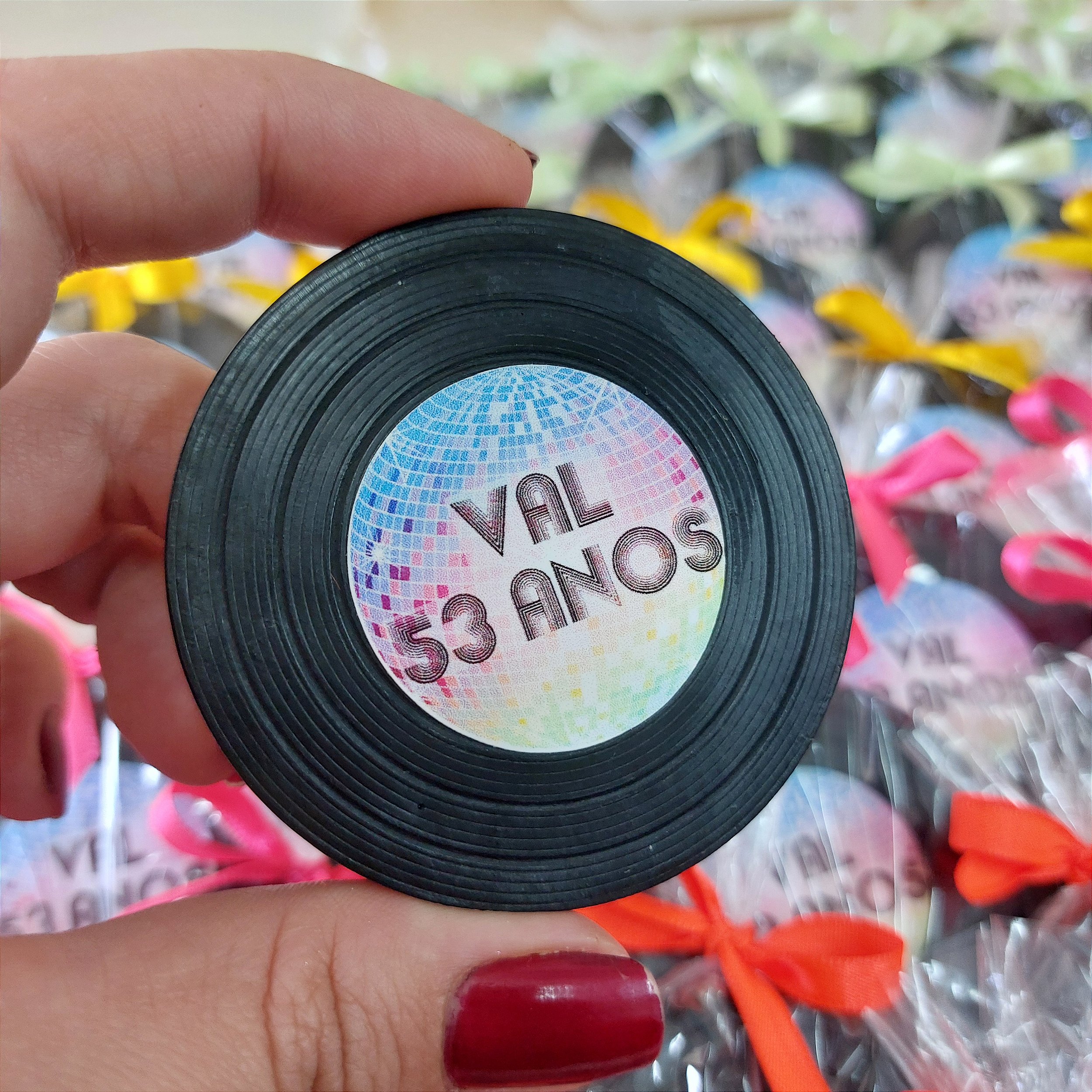Sabonete no Formato de disco de Vinil, com rótulo personalizado, fitas e cheirinho de escolha do cliente.